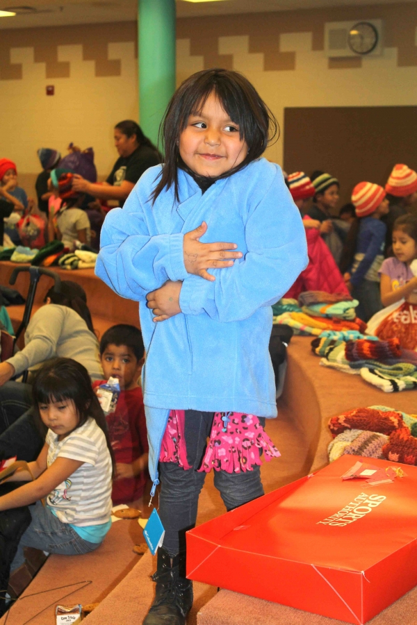 On December 13, 2014 the 9th Tewa Holiday Project Delivery took place at the Tewa Community Center at First Mesa. 30 cars and 60 folks from around Sedona made the delivery. The weather tried to slow us down but they forged onward through snow and rain.