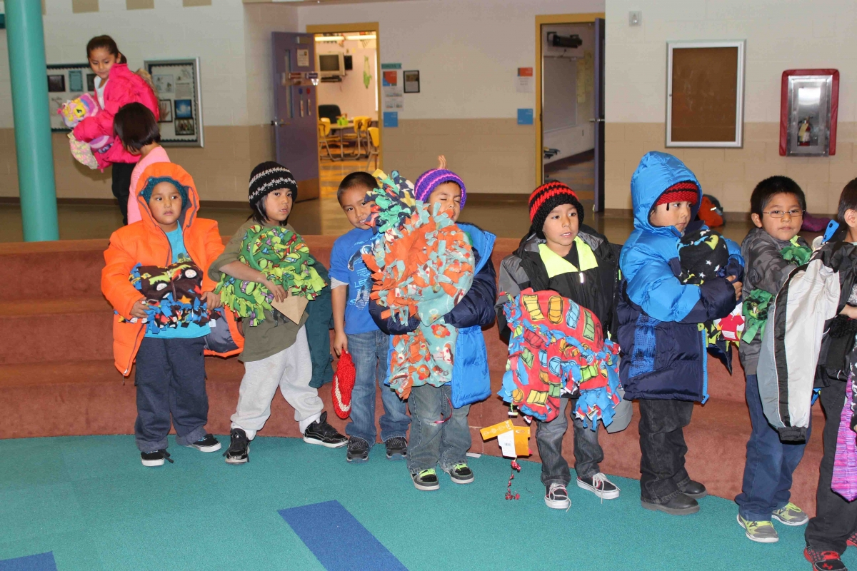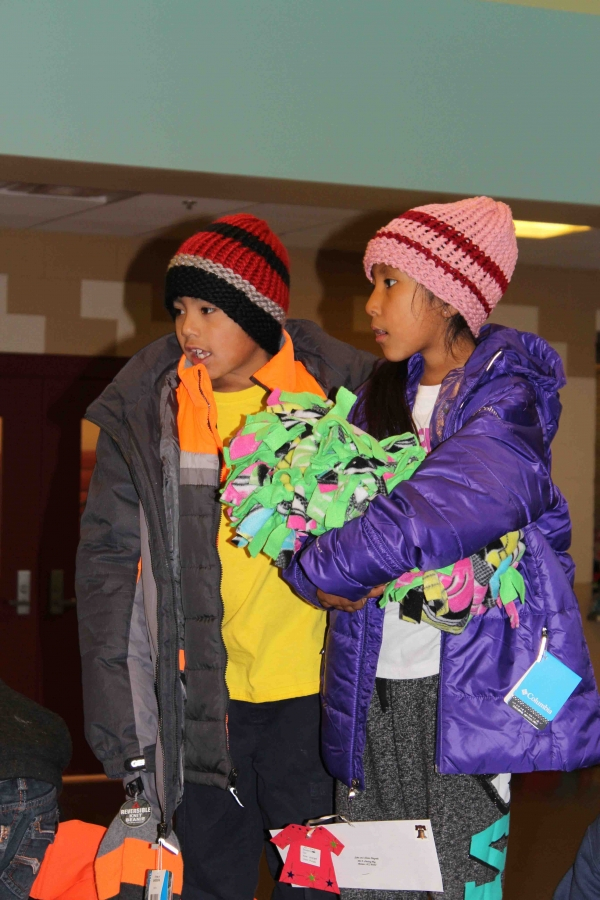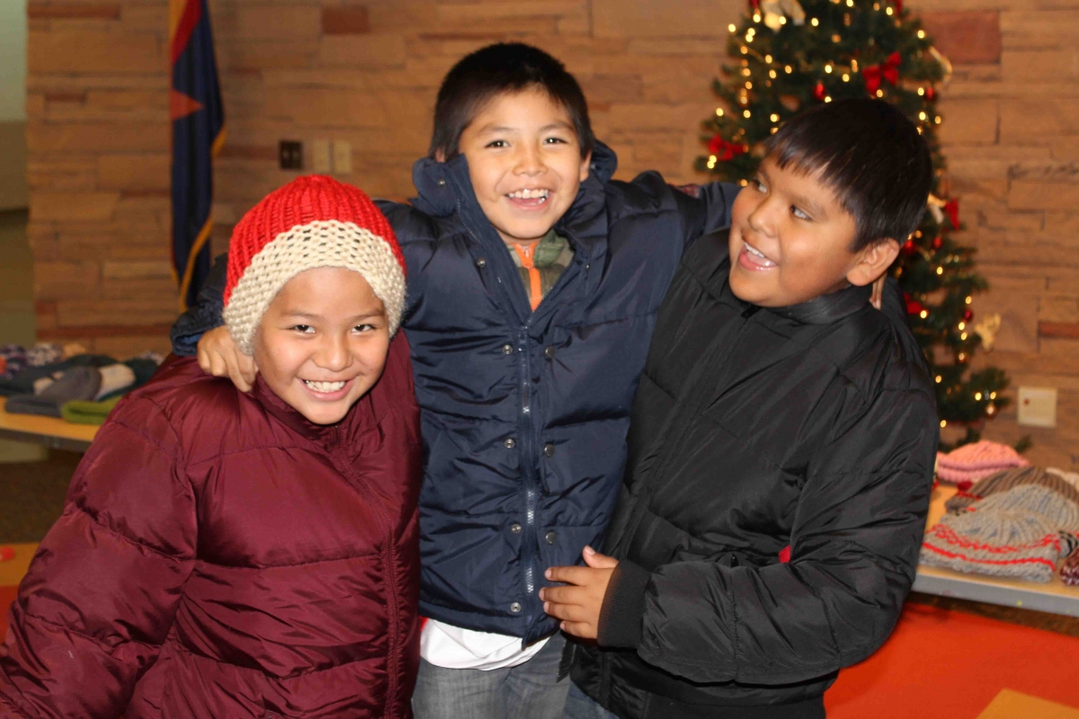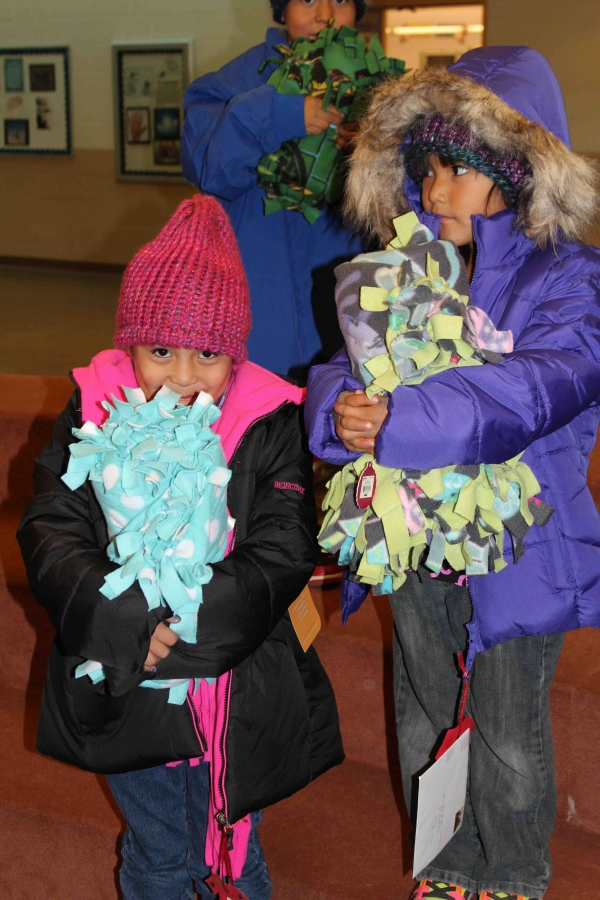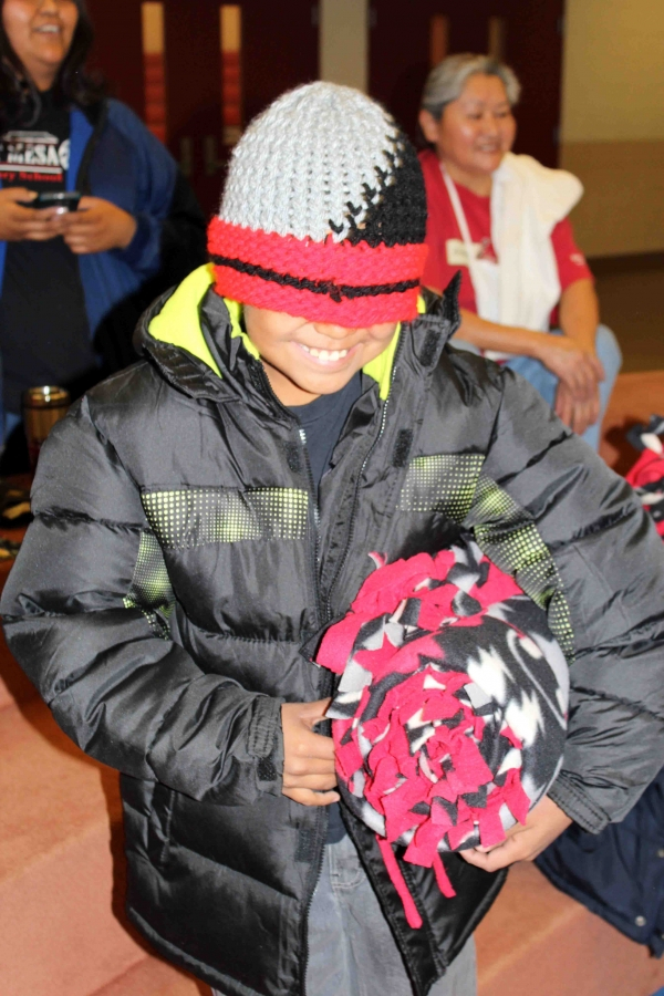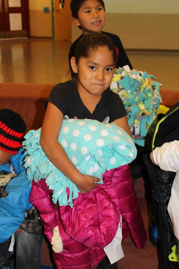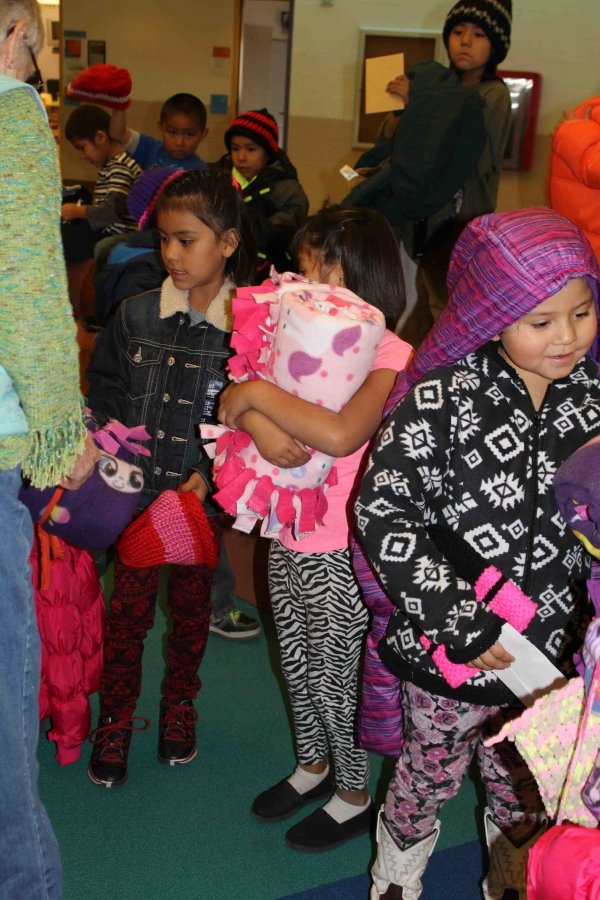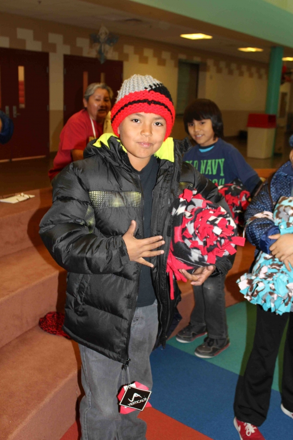 110 brand new coast, 160 hand made hats and over 40 hand made fleece bankets were delivered to First Mesa Elementary as part of the 2015 tewa Holiday Project. Many Thanks to Caroline Diehl and the students from Verde Valley School that coordinated this, the fourth year, of the Coats4Kids new coat drive. Hand made hats were made by Milton Crewse, Jan Reimer and Bobbie Jaeger from Juneau, Alaska.Two displays were put out in the Sedona Community one at Webers IGA in the Village of Oak Creek and one at Natural Grocers in West Sedona where the Coat ornaments flew off the trees and were returned as full sized brand new coats.